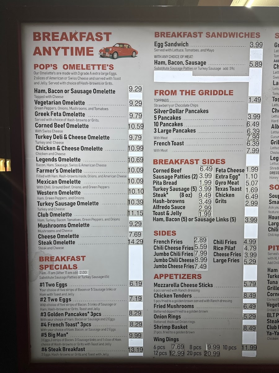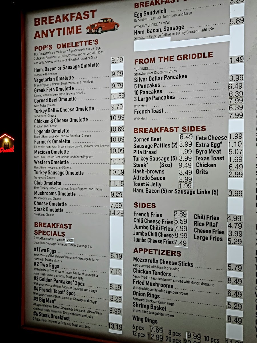 - Breakfast Sides: This section includes a range of items often served with breakfast, such as toast, various types of meats (bacon, sausage patties and links, ham, gyro meat, steak, corned beef), cheeses, grits, hashbrowns, and pita bread.