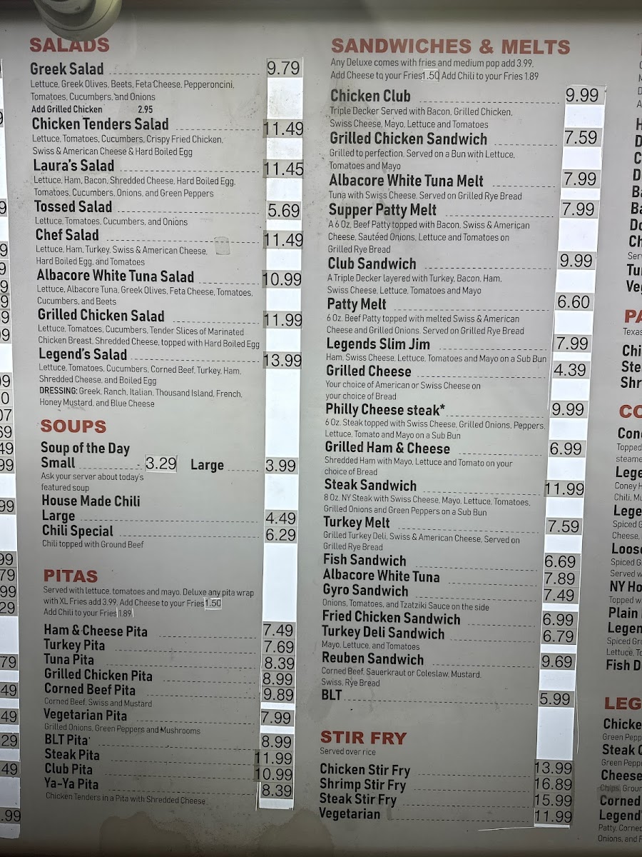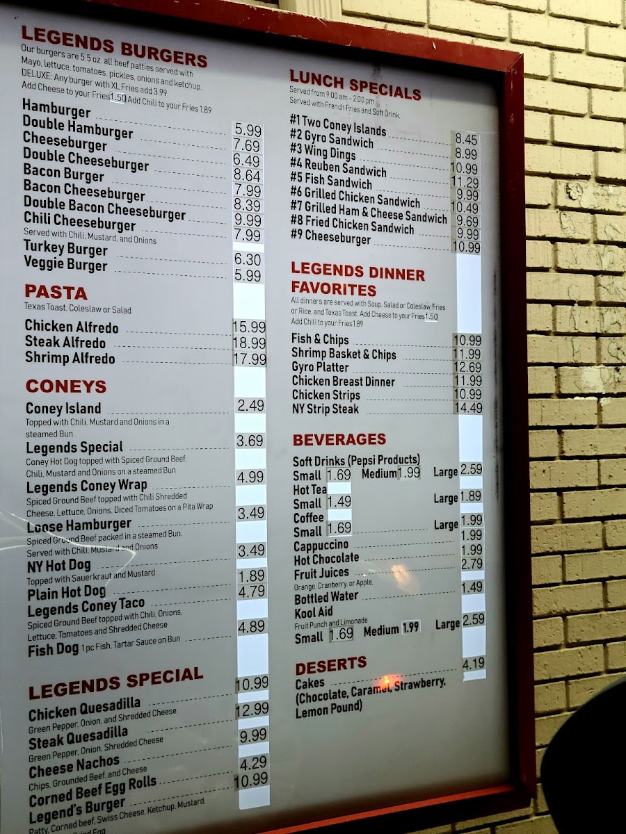Legends Coney Island Menu